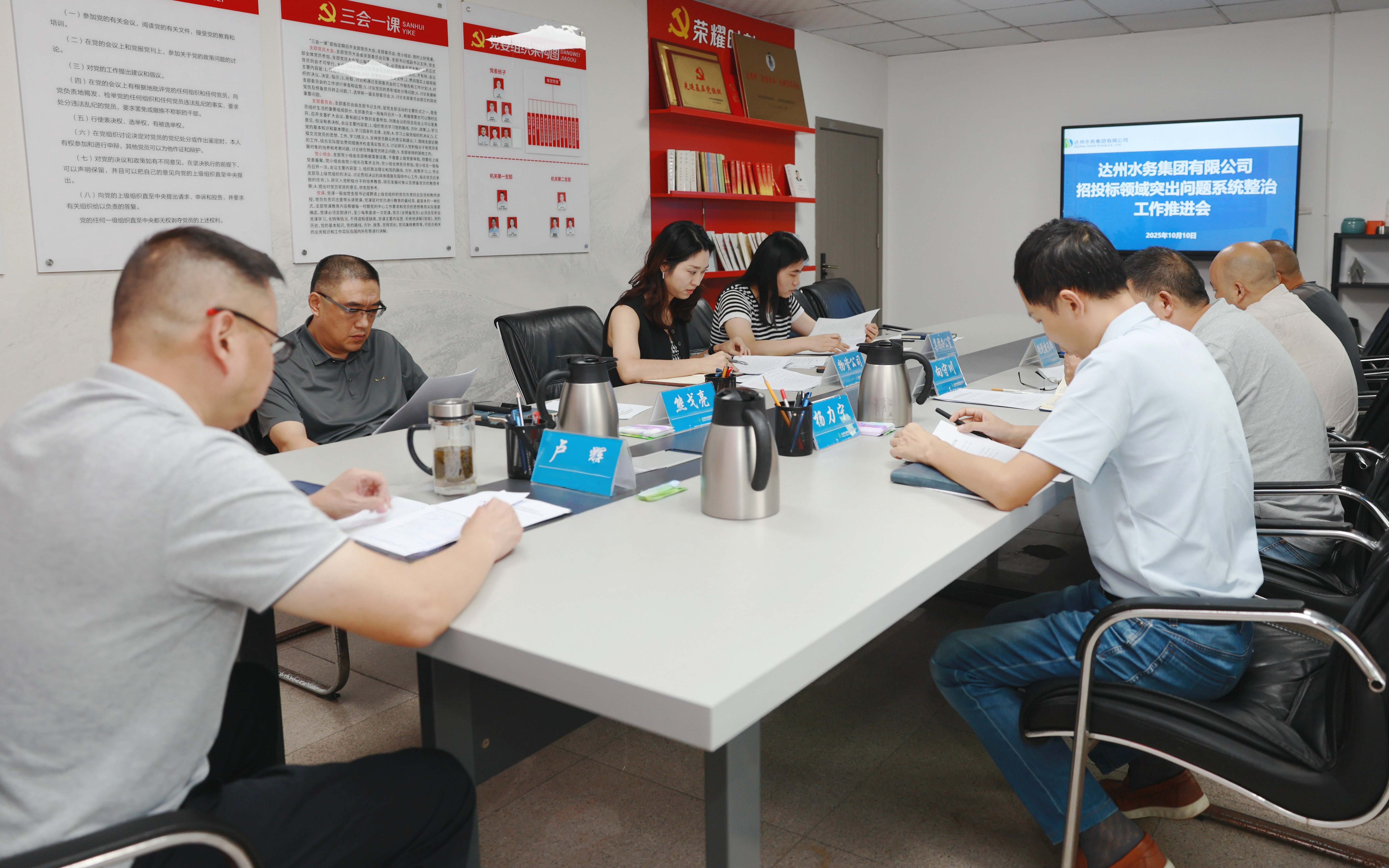 會議就《達(dá)州水務(wù)集團(tuán)有限公司招標(biāo)投標(biāo)領(lǐng)域突出問題系統(tǒng)整治方案》進(jìn)行了專題討論,向守川匯報了前期工作進(jìn)展、現(xiàn)存困難問題和下一步打算。