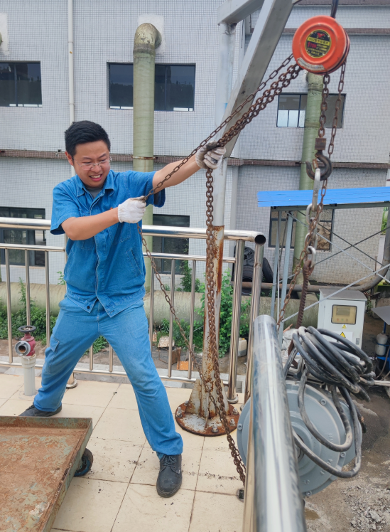 污水設(shè)備維修事務(wù)雜、任務(wù)多、責(zé)任重、環(huán)境惡劣,只有細(xì)致規(guī)劃,安全操作,才能保質(zhì)保量完成維修任務(wù),很多維修員不愿從事或堅(jiān)持。余昊不忘初心,發(fā)揮所學(xué)的專業(yè)優(yōu)勢(shì),扎根污水處理一線,理論聯(lián)系實(shí)際,發(fā)揮新時(shí)代黨員先鋒模范作用,始終盡職盡責(zé),無(wú)論是日常工作任務(wù)還是臨時(shí)的緊急任務(wù)他始終以積極的態(tài)度對(duì)待每一個(gè)任務(wù)。2023年“五一”期間,文家梁泵站入水口井下20米液動(dòng)閥門無(wú)法開啟嚴(yán)重會(huì)導(dǎo)致污水溢流。在人員不足的情況下,他毅然放棄假期立即投入維修工作。組織維修物資轉(zhuǎn)運(yùn),建立安全通風(fēng)設(shè)施,保障安全作業(yè),通過(guò)兩晝夜的奮戰(zhàn)及時(shí)更換了液動(dòng)閥門,保障了廠區(qū)生產(chǎn)。