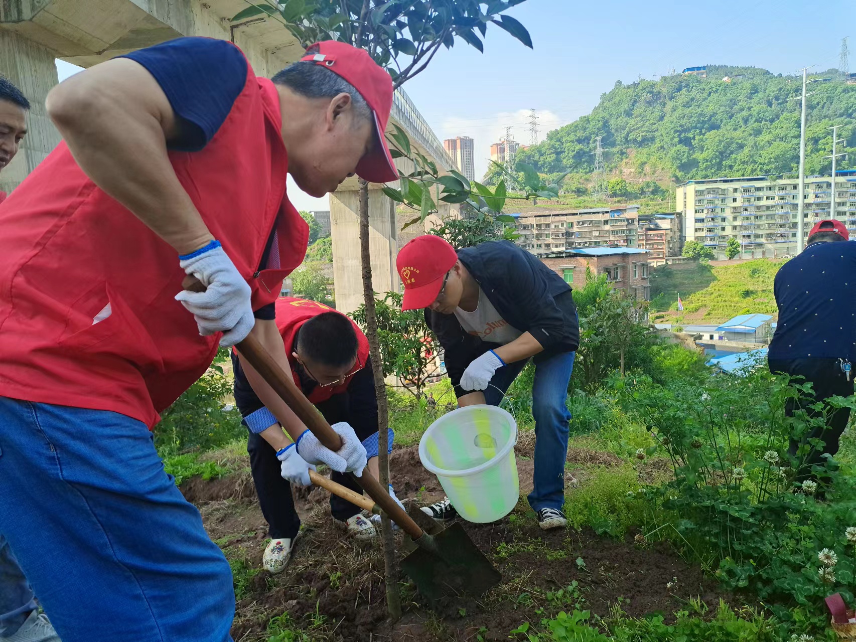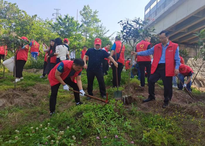 活動(dòng)中,志愿者們揮鍬鏟土,栽植樹(shù)苗、提水澆灌,三人成組、五人成團(tuán),每道工序都做得認(rèn)真仔細(xì)、一絲不茍,志愿者們更是爭(zhēng)先恐后,干勁十足。一棵棵新栽種的樹(shù)苗亭亭玉立,在明媚的陽(yáng)光中呈現(xiàn)出勃勃生機(jī),為大地平添一抹新綠。