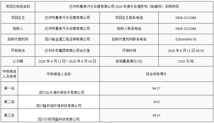 下一篇:達(dá)州市惠泉污水處理有限公司2020年度單過硫酸氫鉀復(fù)合粉采購項(xiàng)目招標(biāo)公告